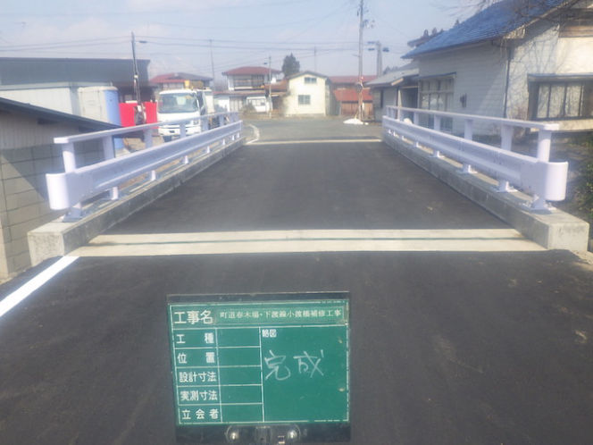 老朽化が進んでいた小渡橋の機能の維持・延命を目的とした工事です。当社にて床版打替工、地覆打替工、伸縮継手工、防護柵工を行いました。