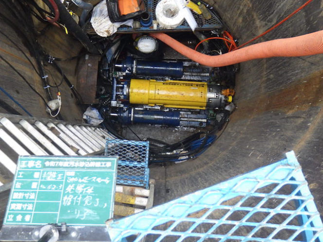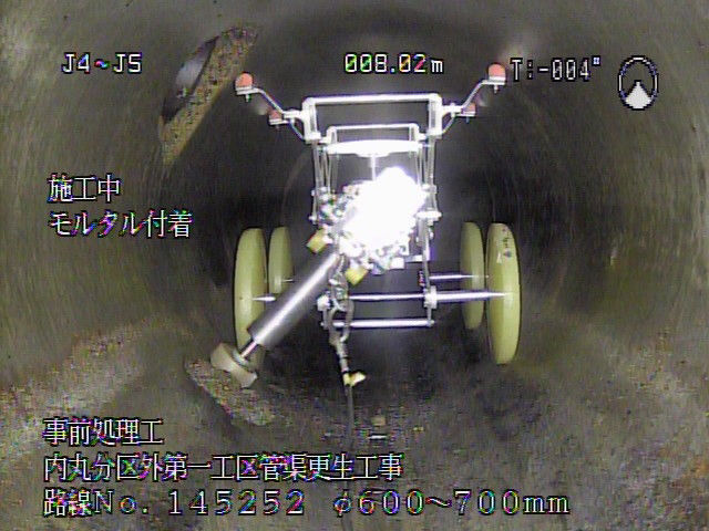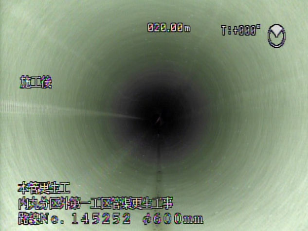 内丸地域の下水道管の老朽化が進んでいた為、機能の維持・延命を目的とした工事です。FFT-S工法による管きょ更生工事を行いました。施工延長 L=169.1m